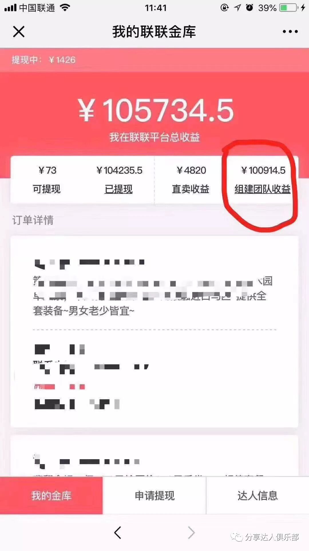 有佣金显示 下单后就可以看到平台上提提示有佣金到账 打开小金库 就有佣金 申请组建团队二维码 发展20队友 升级成为高级达人佣金更高