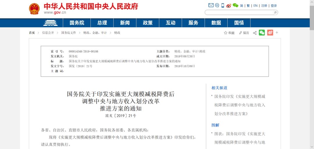 日前,国务院印发《实施更大规模减税降费后调整中央与地方收入划分改革推进方案》,旨在进一步理顺央地财政分配关系,有力落实减税降费政策。