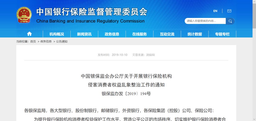 《通知》还要求各银行保险机构加强顶层设计,完善产品服务管理、投诉管理、信息保护、内部考核等制度办法,对机构自查和监管抽查发现的问题要逐一建档立案,一次性问责到位。