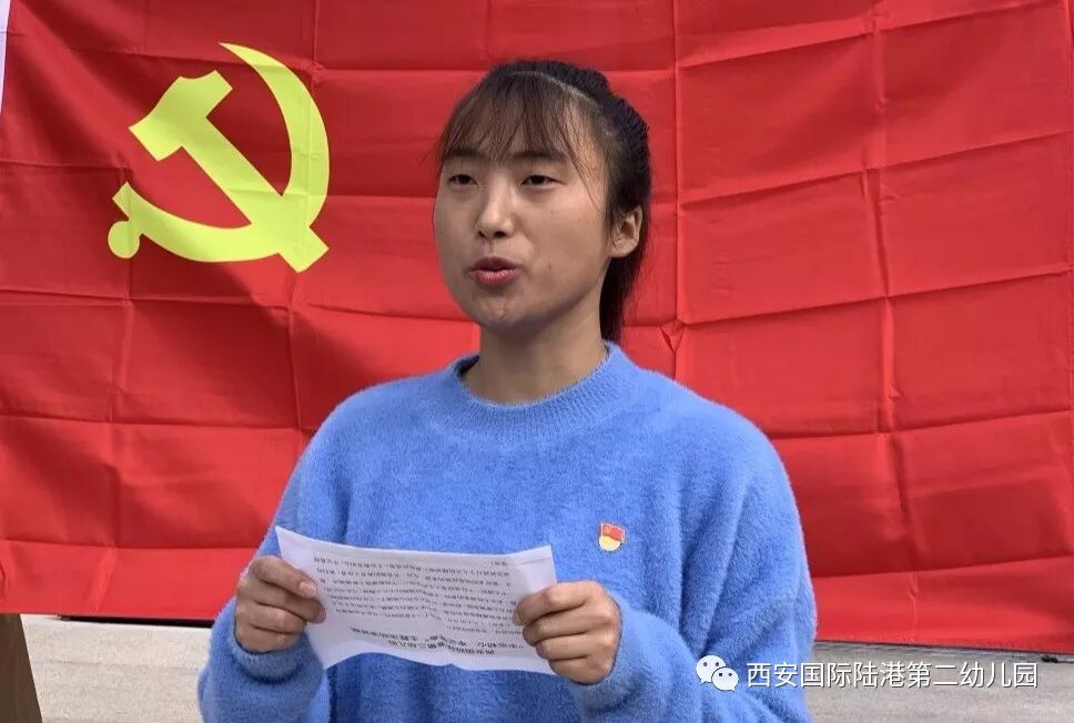 首先,我园优秀党员代表在党旗下进行“不忘初心,牢记使命”主题演讲。作为新时代教育工作者,我们更应该继承和发扬“西迁精神”,从老一辈交大人手中拿起接力棒,肩负历史赋予我们的使命,坚定心中的理想信念,在幼教工作中用热爱、奉献与责任去践行我们的初心,将西迁精神发扬光大,铿锵有力的话语激励着在场的每一位党员。