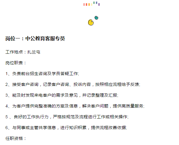 扎兰屯学习中心地 址:扎兰屯阳光小区西门北侧10米门市中公教育