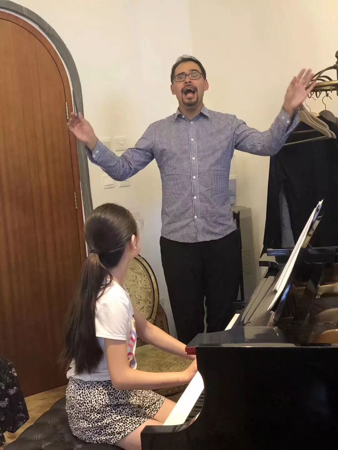 (不到8点孩子们来到琴房,迫不及待练习)