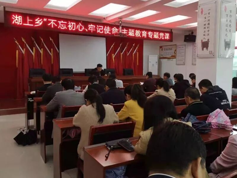 10月27日上午,湖上乡“不忘初心、牢记使命”主题教育专题党课在乡政府三楼会议室举办,乡党委书记刘毅进行专题授课。乡机关全体干部、各村党支部书记近70人参加学习。