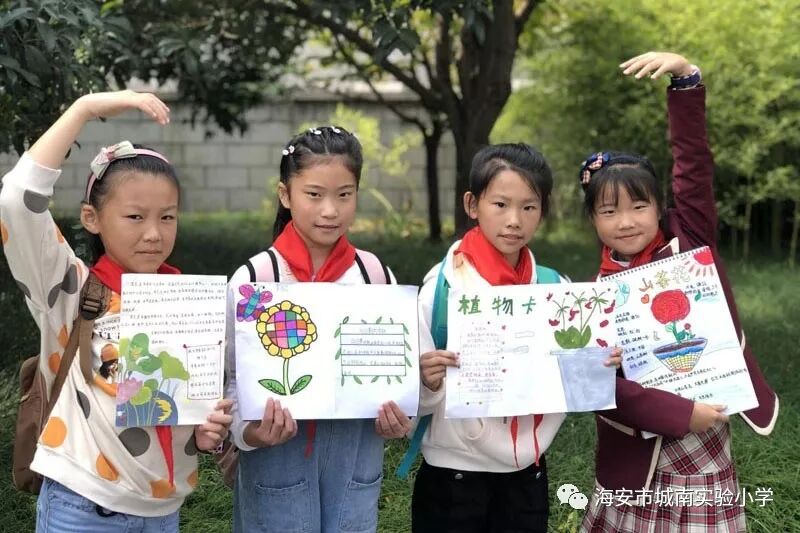孩子们跟着老师和家长志愿者们且行且赏,东校区不少老师纷纷担起了义务讲解员,孩子们边听边记。西校区四、五年级的孩子们互相介绍着自己认识的植物,有的还把自己制作的植物卡片随身携带着!