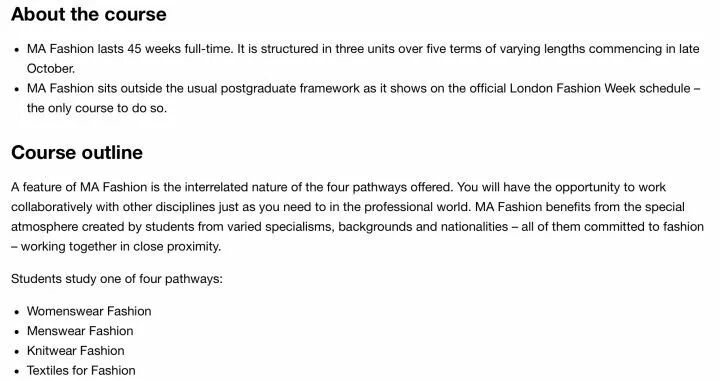 伦敦时装(LCF):时尚设计、时尚管理、以及各种时尚类相关专业;