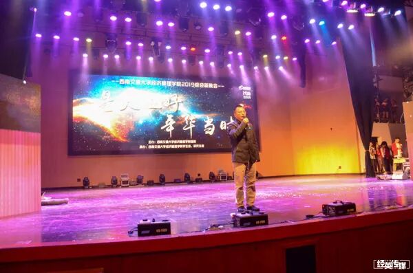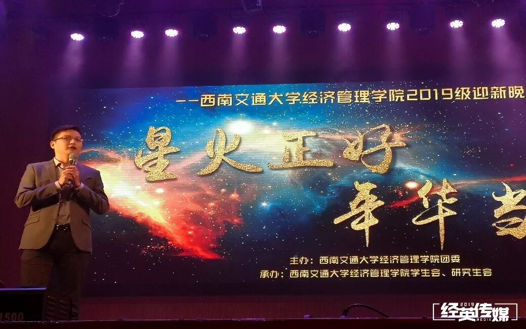 10月21日晚上7时整,西南交通大学经济管理学院“ 星火正好 年华当时 ”2019级迎新晚会在西南交通大学九里校区大学生会堂隆重举行。此次晚会由经济管理学院团委主办,院学生会、研究生会承办。出席本次晚会的嘉宾有:经济管理学院党委书记郝辽钢,党委副书记江宇兰、杨宏毅,副院长李良,以及学院教职工代表,各兄弟学院团委书记,学生会指导老师、主席和研究生会主席等。