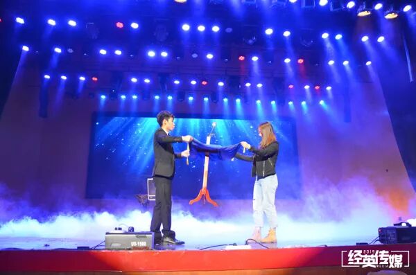 不同于以往,今年的迎新晚会新增了魔术互动环节。魔术师邀请一名观众上台,和他一起掀动桌布,原本放置在舞台上的桌子渐渐腾空,引来场下观众阵阵叫好,掀起晚会第一个小高潮。