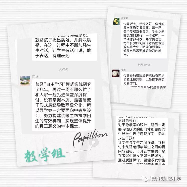 研训活动结束了,大家的思索却未停息!意犹未尽的老师们,在各自的教研群中继续分享自己的收获与思考。不断反思、不断提升,每天进步一点点,我们一直在前行!