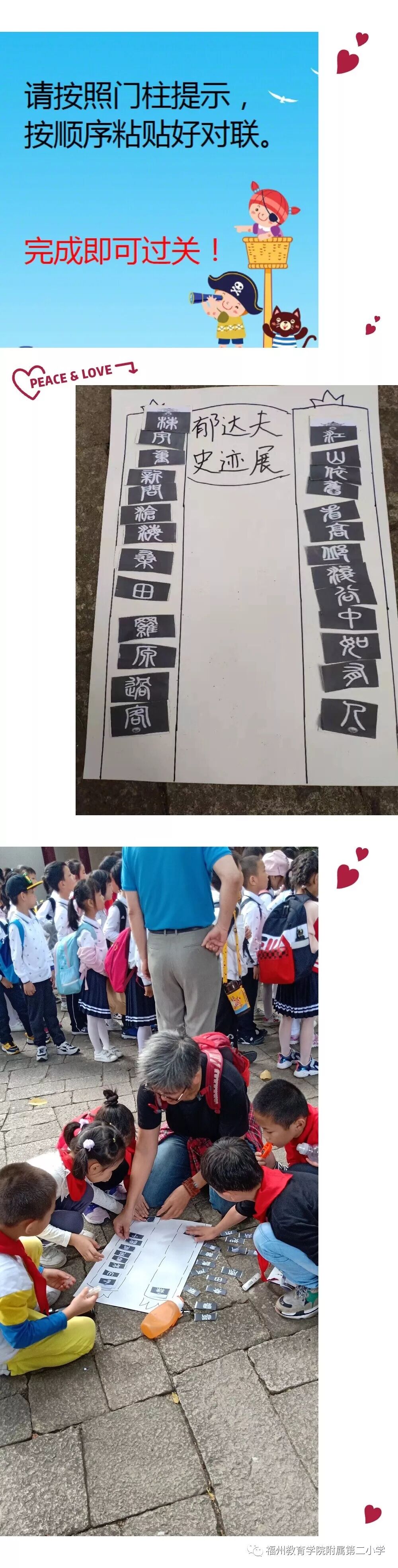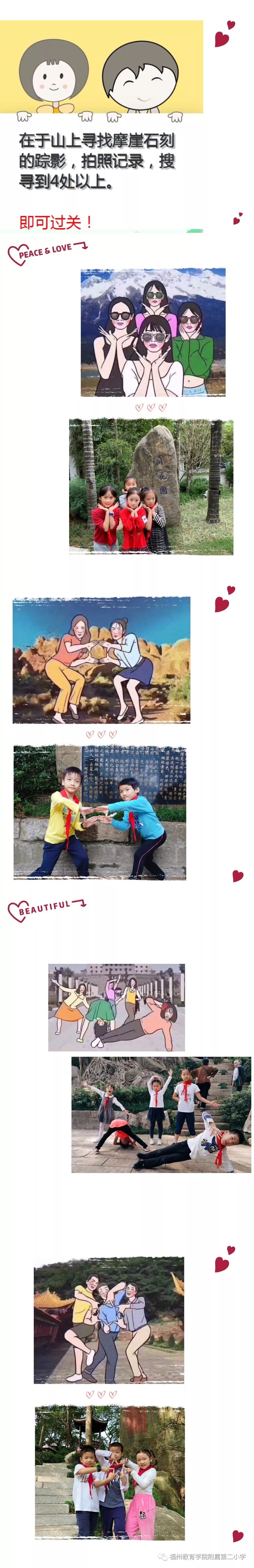 为了让同学们能够开心出行,寓学于乐,二年段老师们在策划秋游活动时,特制定了创意且有趣的“于山闯关”活动,对闯关活动进行了精心组织和周密安排,让孩子们不仅是走马观花地游览于山,而是深入了解于山的各个景点,在团队活动中培养合作精神,在不同的闯关活动中各显其才。