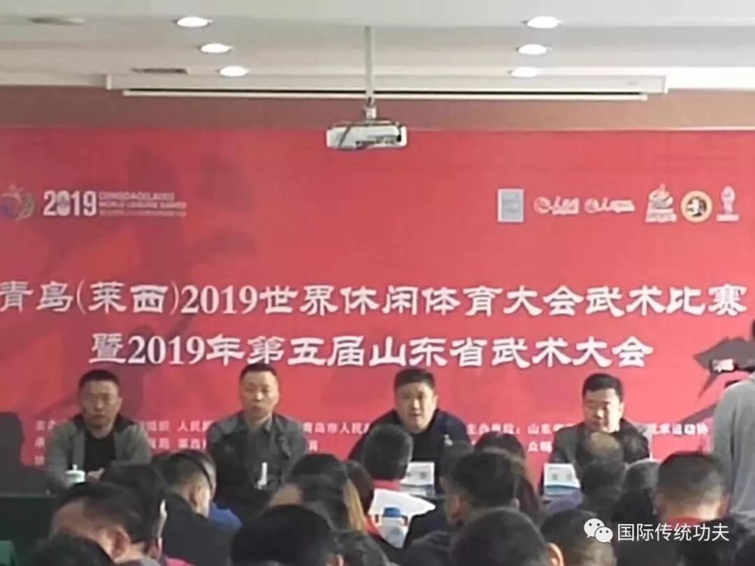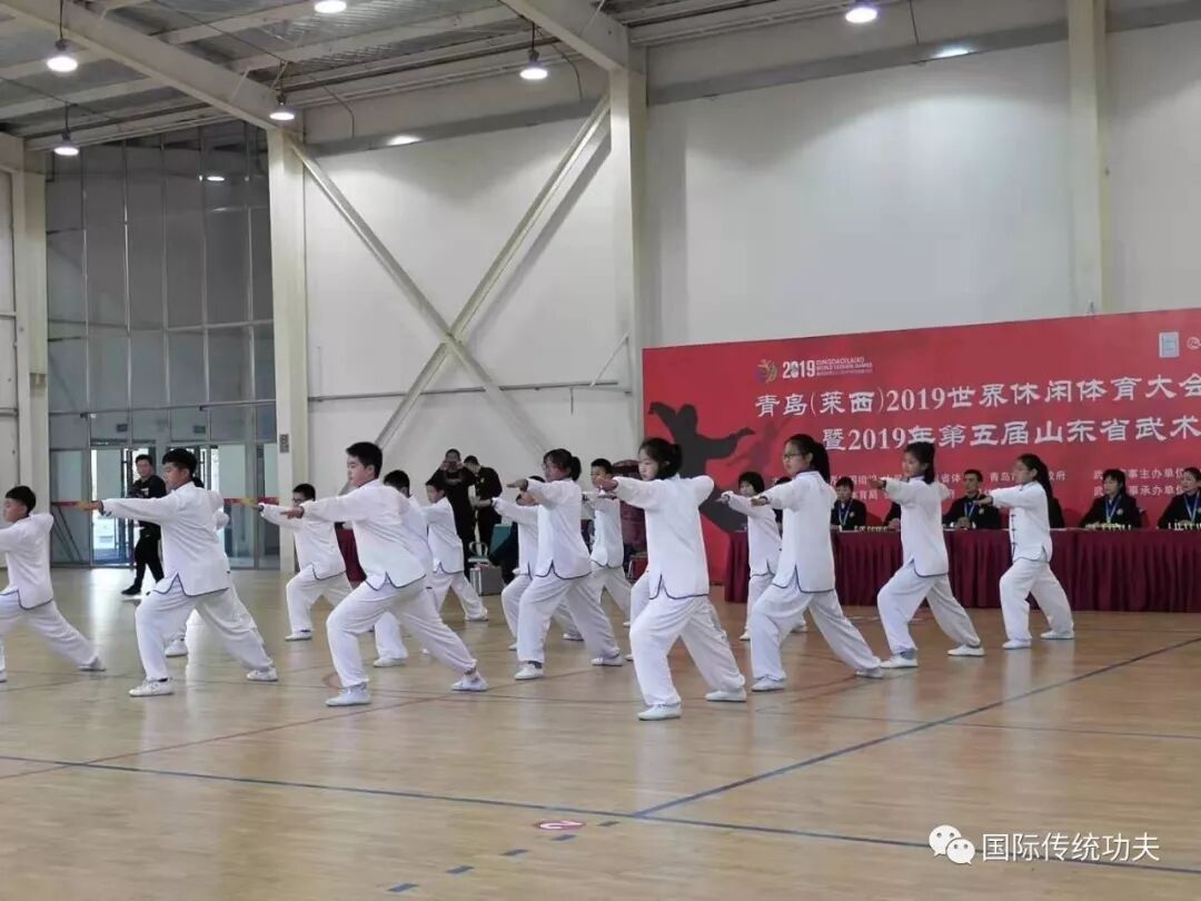 2019年24号-28号由世界休闲组织、人民网、山东省体育局、青岛市人民政府主办。青岛市体育局、莱西市人民政府、人民体育承办,宁拓体育协办。山东省武术院、山东省武术运动协会武术赛事主办单位,众畅体育有限公司武术赛事承办的2019世界休闲体育大会武术比赛暨山东省第五届武术大会在青岛莱西闭幕。来自省内外的109支代表队、2500人齐聚莱西,进行11个大项、44个分项、102个小项的武术竞技,传承武术文化,展示武术魅力。