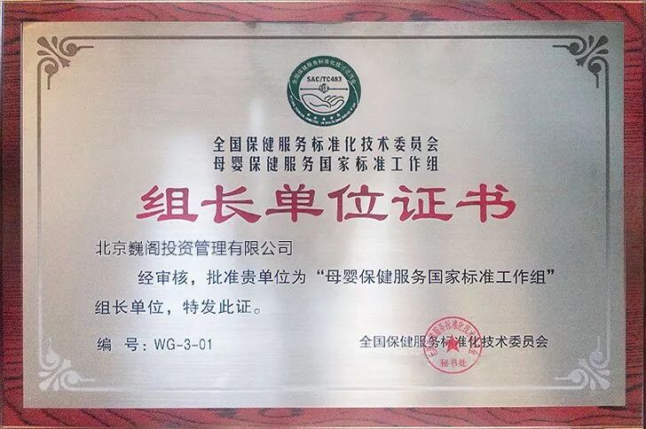 母婴保健行业国家标准制定组组长单位