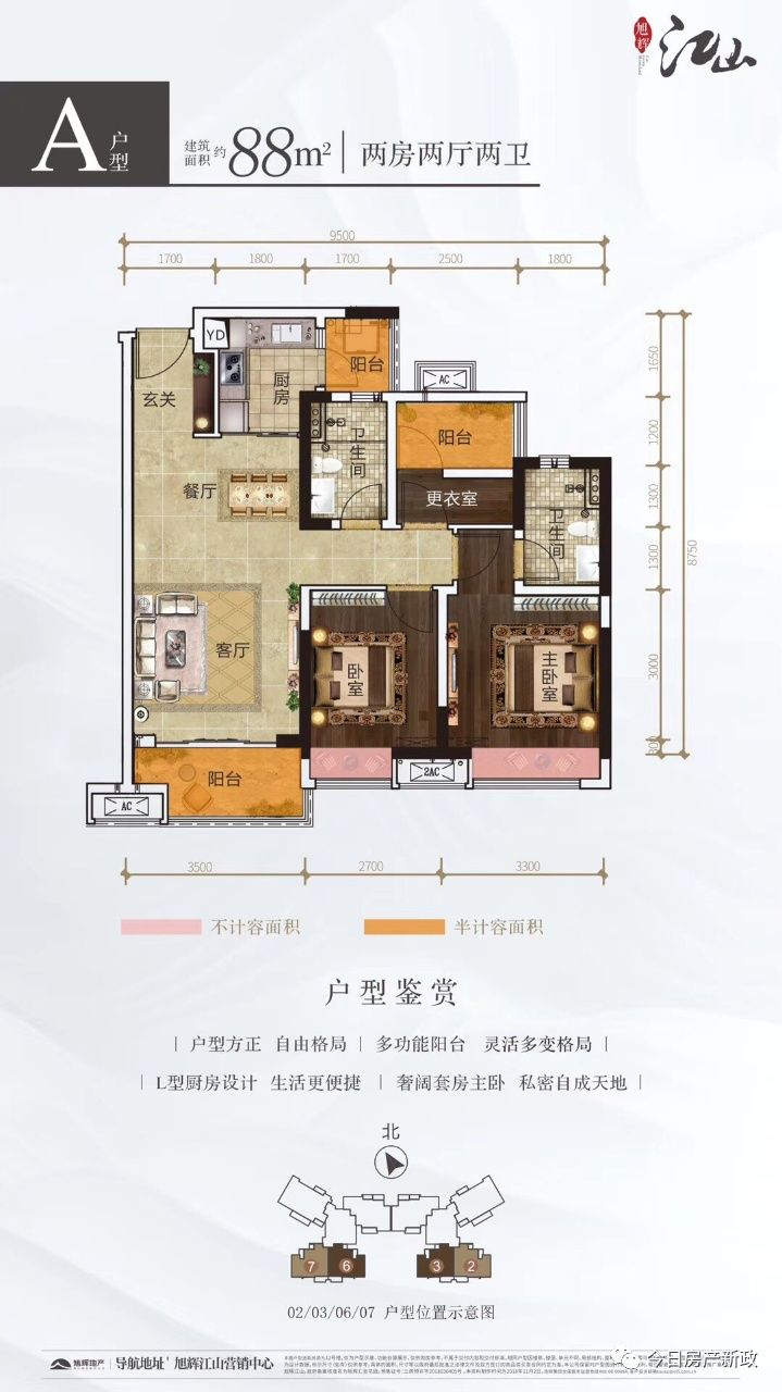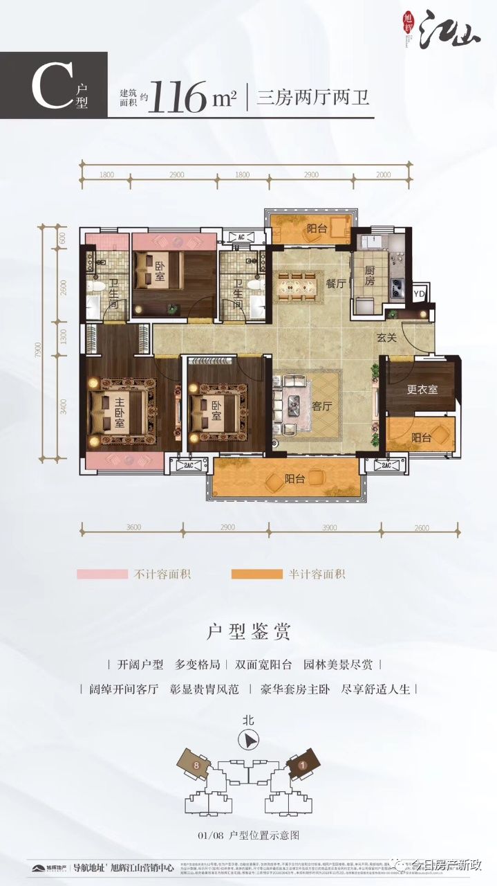 8.在售26座在售88平方坐北朝南看园区温馨小三房,105平方南北对流舒适大三房,116平方一部到位四方享有6米景观大阳台,小阳台享有水轴景观