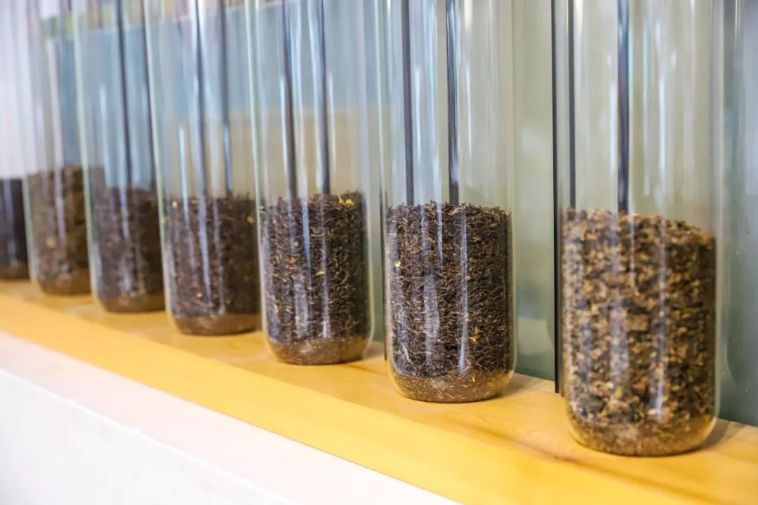 果肉简单粗暴地“捶”“摇”,再丢进茶里,搭配六窨茉莉毛峰,保证每一口都被葡萄360°围绕!