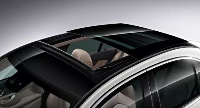 车顶系统配有深色安全的大面积玻璃,带有一触式控制功能的电动遮阳帘,实现温馨舒适的车内环境。位于车顶前部的导风网,实现光与空气之间的完美平衡。