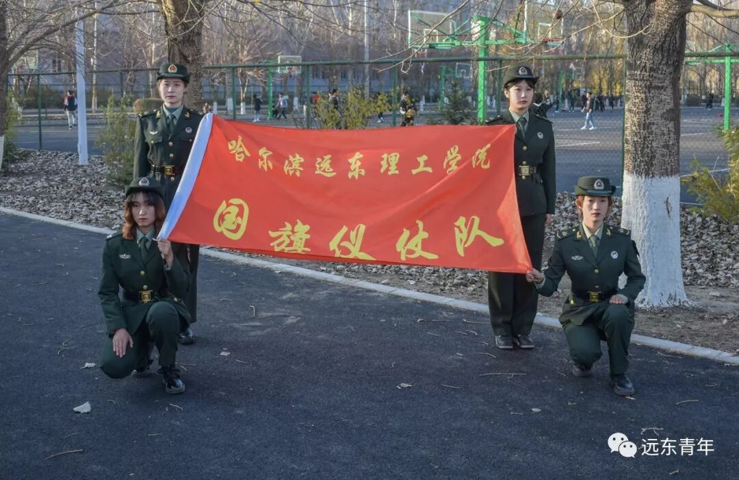哈尔滨远东理工学院国旗仪仗队欢迎新队员入队仪式圆满成功!