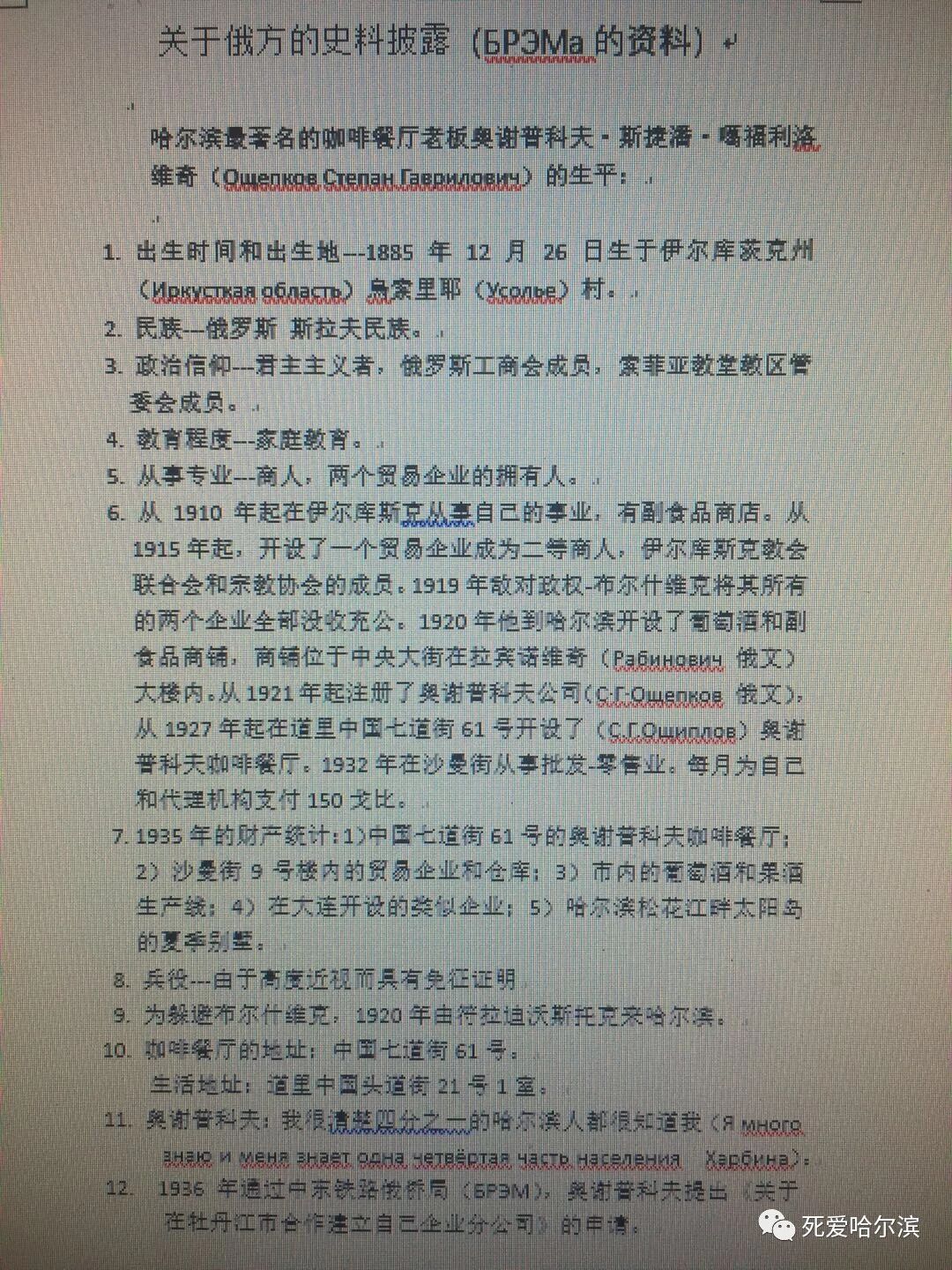 我与俄罗斯驻哈尔滨总领事奥谢普科夫先生的缘分 我的书中将总领事的爷爷在哈尔滨开办的餐厅整理出来并给他看 总领事惊喜的连连称赞说没想道 向我要书还要他爷爷的...