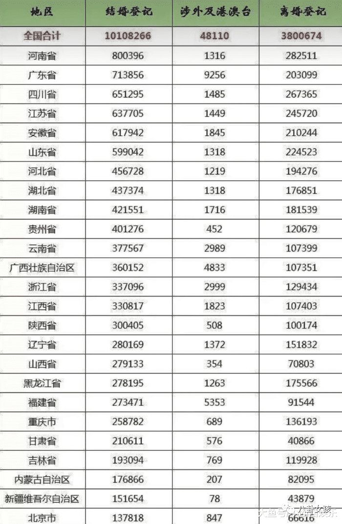 近几年来,离婚率和去年想必增加了4%,而结婚率则同比下降3.3%,在全球离婚率排行榜中,中国也排进了前十。而我国的各大省份的离婚率中,河南省、广东省和四川省则名列前三,而广东也位居第二位,离婚率可也是相当的高,更别提河南省,结婚率和离婚率这位榜首,不过逐年对比的情况下,华北地区中河北省则位居第一。