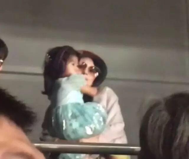 汪峰章子怡戴着醒醒和小苹果,真是和谐的一家四口↓