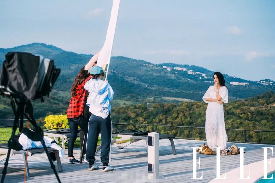 拍摄杂志的时候工作人员也是前后紧随小心翼翼,而且现场看工作人员的衣着并不算冷,风也不大,但章子怡紧抓披在身上的大衣,似乎有点担心着凉↓