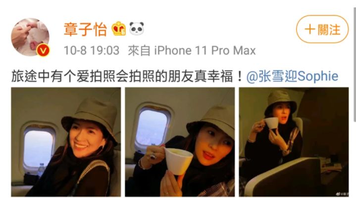 前两天还晒了几张小腹平坦的飞机旅行照↓