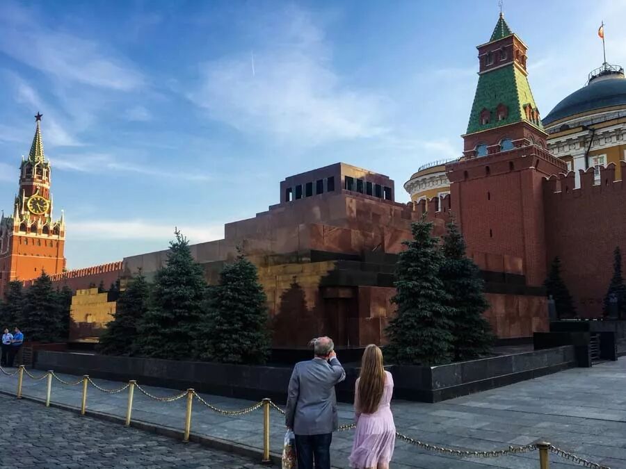 红场的地面很独特,全部由条石铺成,西侧是克里姆林宫;北面为国家历史博物馆,朱可夫元帅雕像、无名烈士墓;东侧为百货大楼;南侧是莫斯科瓦西里大教堂,临莫斯科河。列宁墓位于靠宫墙一面的中部,后面是历史名人的墓,那里竖立着他们的雕像。列宁墓上为重大节日庆典检阅台,有点小遗憾,那天没赶上墓地开放,没能瞻养到伟人的遗容。虽说红场只有北京天安门广场的1/5,但它的历史及宏伟的建筑,让人感觉震撼。从红场回来,心情久久不能平静。