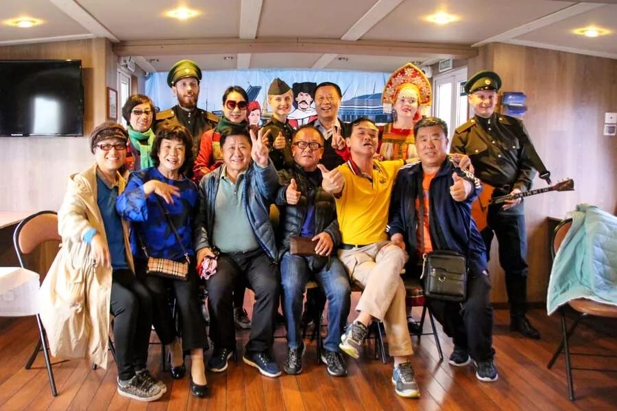 9月15日,10点半上的游船,观看俄罗斯人的歌舞表演,一个半小时的互动,真是开心。我用相机高感光度拍了不少的照片。我们五人的合影是杨芳春大姐拍的,我和俄罗斯女孩的合影是刘阿丽拍,一个旅友还给我们和杨芳春大姐、郭乃丽妹等人拍了张合影。