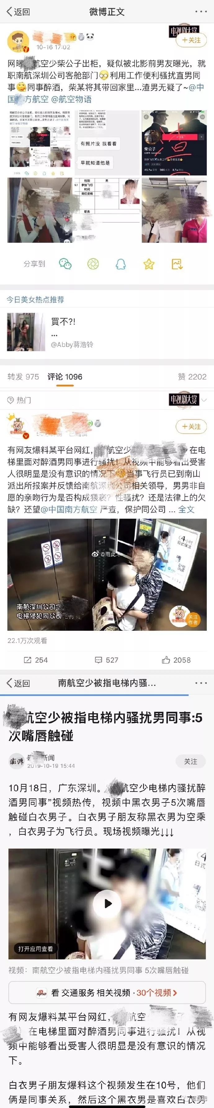 待到10月18日中午,于某将各位所看到的,一段时长9秒钟,我的面部暴露无马赛克的监控视频在朋友圈发布,并说这是为了尽快平息事件。很快,微博名为“芒果XX星”的500万粉丝博主不知从何获取的这段视频,在未经当事人同意的情况下,便将这段视频和我的真名网名全部公之于众,并引起上升至公司,职业乃至猥亵罪名的舆论。随后,澎X新闻等等诸多媒体便疯狂转发,让我瞬间成为众矢之的…………那一下午,我接到了无数的信息,电话,质问……无数的记者打电话给我,也不敢接受采访,因为我害怕再被作文章影响到公司,影响到彼此的职业,所以宁愿自己忍气吞声被误解。直到现在,依然有无数不知道完整视频及实情的人发来信息询问,我是不是新闻里提到的那个黑衣变态…………