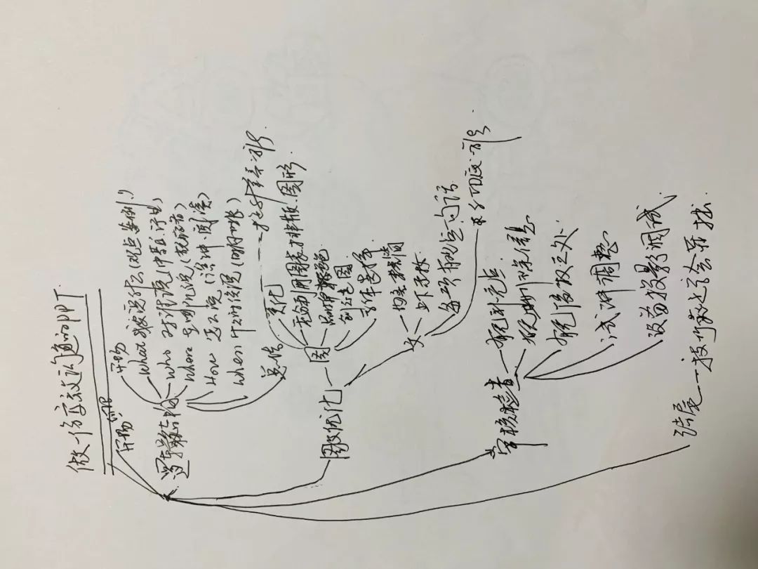拿我做课件为例,整个课件的结构,若是电脑上画思维导图,稍不熟练就要十几分钟,而拿笔画只要四五分钟,要画得不犹豫,就一定要想清楚,这也间接在促使我们快速理顺这件事的逻辑。
