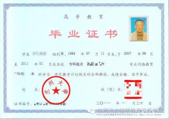 学生在学习期限内修完教学计划规定的课程(本科层次学生还须通过教育部组织的网络教育部分公共基础课全国统一考试),达到毕业条件,颁发国家承认学历的兰州大学毕业证书,教育部统一进行学历证书电子注册。未修满学分者视已修学分情况,颁发写实性结业证书。本科毕业生符合兰州大学学位授予条件者,授予兰州大学成人高等教育学士学位。