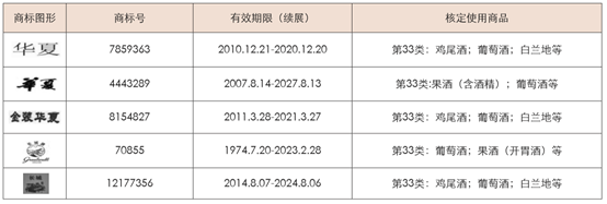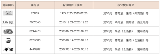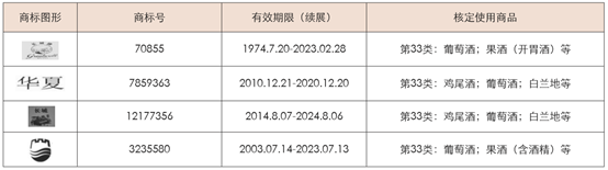 ”商标注册人为烟台金装华夏葡萄酒有限公司,前述7个注册商标核定使用的商品均为第33类(包括葡萄酒等),均在有效期内。