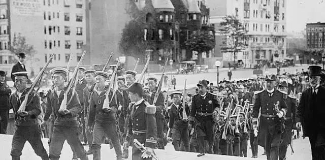 程璧光与纽约市长盖诺尔检阅”海圻号“舰水兵