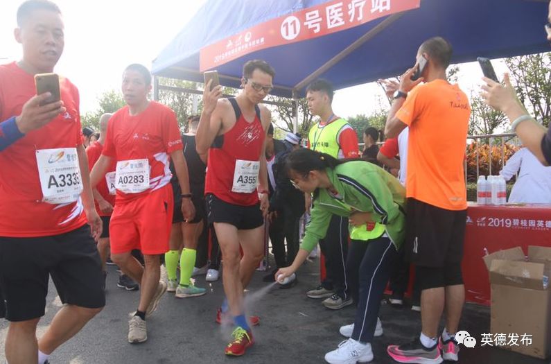 比赛现场,英德市委书记吴耿淡,清远市文化广电旅游体育局局长许广勇,英德市委副书记、市长肖勇科,英德市人大常委会主任陈子匹,英德市政协党组书记张光,英德市人民政府副市长吴秋凤;碧桂园清远区域助理总裁、碧桂园英德片区负责人陈子茗,广州中体体育有限责任公司董事长李强出席起跑仪式并为比赛鸣枪。