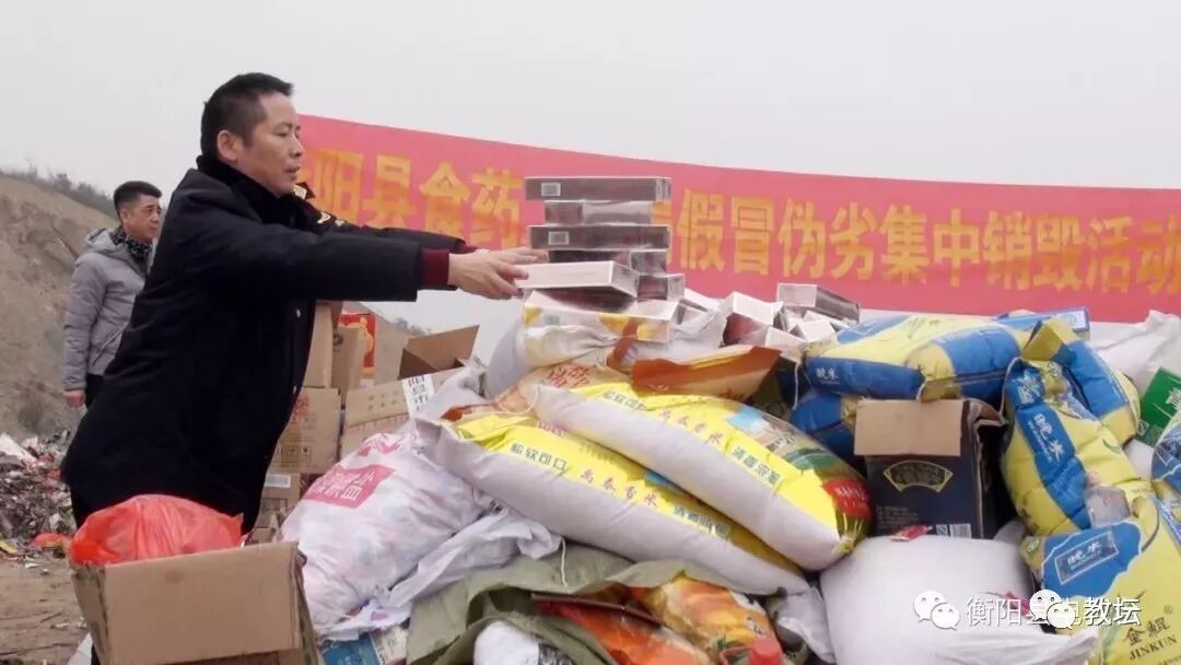 春节临近,为进一步肃清节日市场,衡阳县对一批假冒伪劣商品进行集中销毁,共涉及烟酒、粮油,副食,小家电等多种类商品,总价值约32万元。