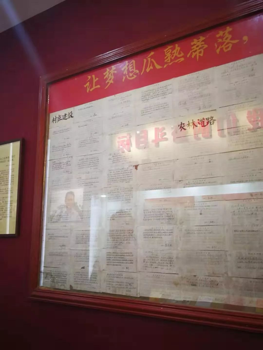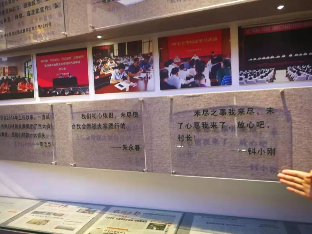 陈列馆内图文并茂,通过时间轴展示了迎丰村的各个时期的村风、村貌。“只饮迎丰一湾水,止用迎丰一张纸。”这句承诺镶刻在最醒目的位置。王丰华担任村委会主任的5年多的时间里,工资全部捐献给社会、村老龄事业,自掏腰包无数用以发展村公共事业。