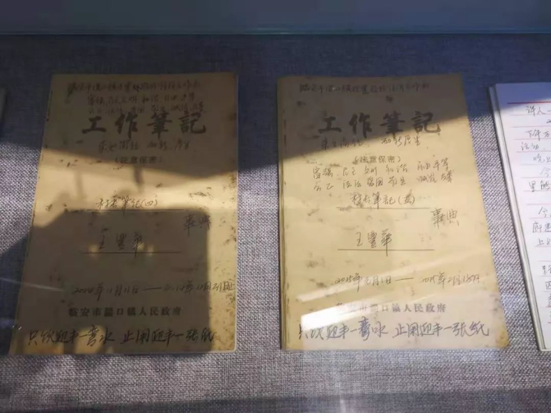 玻璃展台内,21本笔记近100万字的“村长笔记”记录了自2013年底担任村委会主任以来的点点滴滴,有工作计划,有会议记录,有学习体会 ,有村民的心愿诉求。这是一种工作态度,一种共产党人为人民谋幸福的“履历书”。
